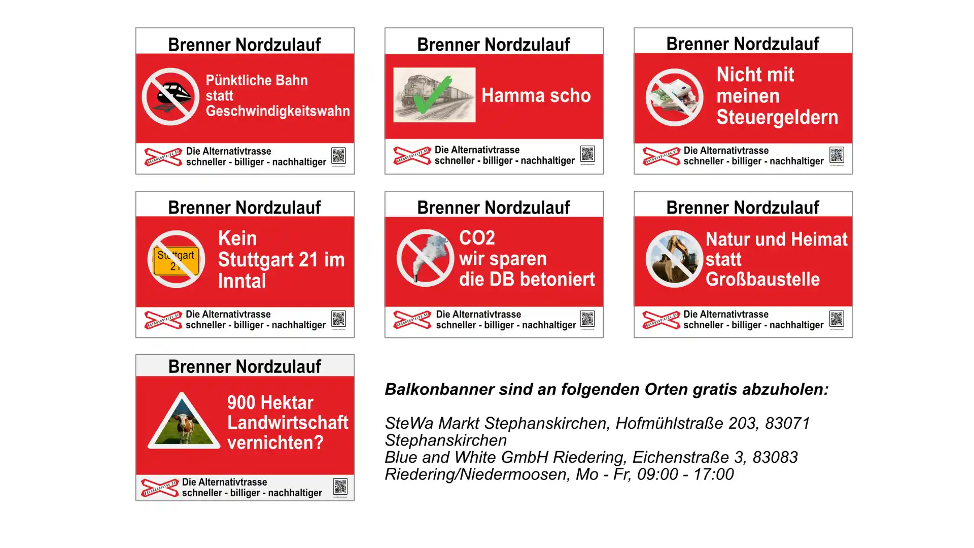Weitere Abholorte bitte per mail anfragen: Lothar.Thaler@brennerdialog.de